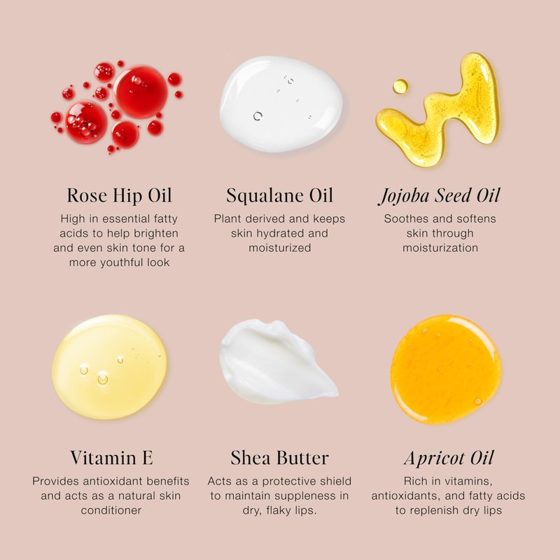 This set includes our best-selling Bare Rose cheek + lip stick to for the perfect flush while the deluxe mini lip oil offers a nourishing glass-like shine. What it does: Apart from adding color, Blush & Bloom is loaded with gorgeous, skin-soothing oils like jojoba seed and squalane, which provide beaucoup hydration. Rose hip oil brightens and evens skin tone, while vitamin E adds antioxidant benefits and shea butter creates a protective shield that keeps all that nourishment in. A gorgeous cocktail of beautiful oils come together to nourish lips while creating natural shine and slip. Apricot oil is rich in vitamins, antioxidants and fatty acids to replenish, while jojoba oil locks in moisture. Vitamin E acts as a natural conditioner, keeping lips looking plump and healthy.