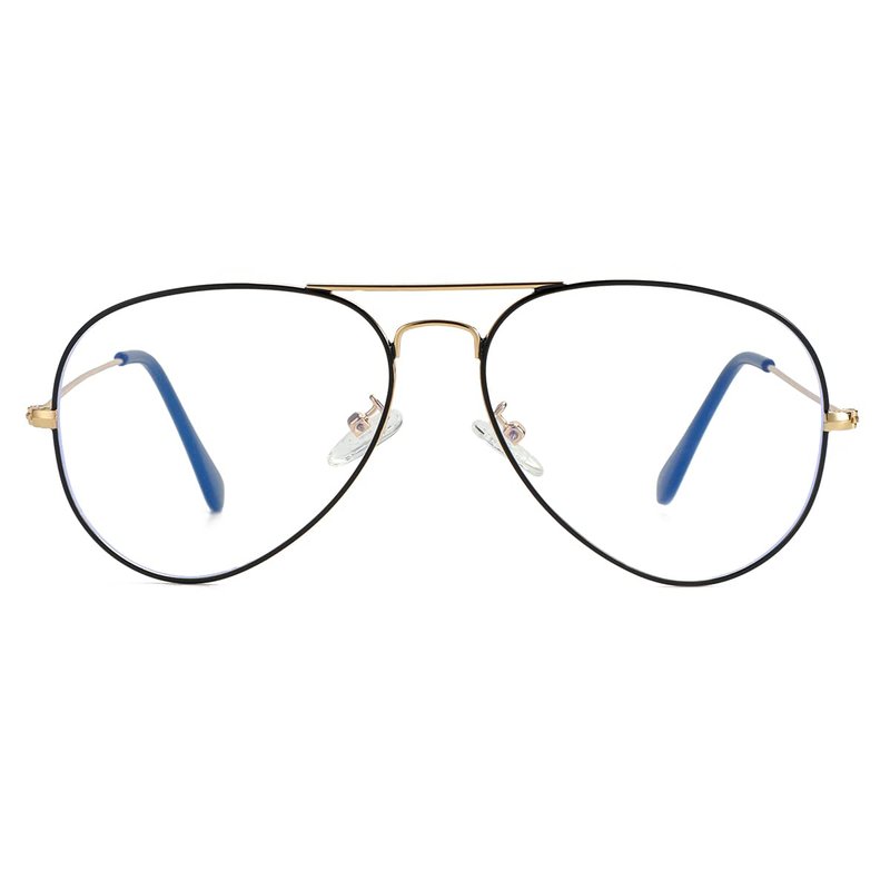 JOVAKIT Aviator Clear Lens Glasses for Women Men Non-prescription Eyeglasses Blue Light Blocking Lens Metal Frame (Black/Gold)