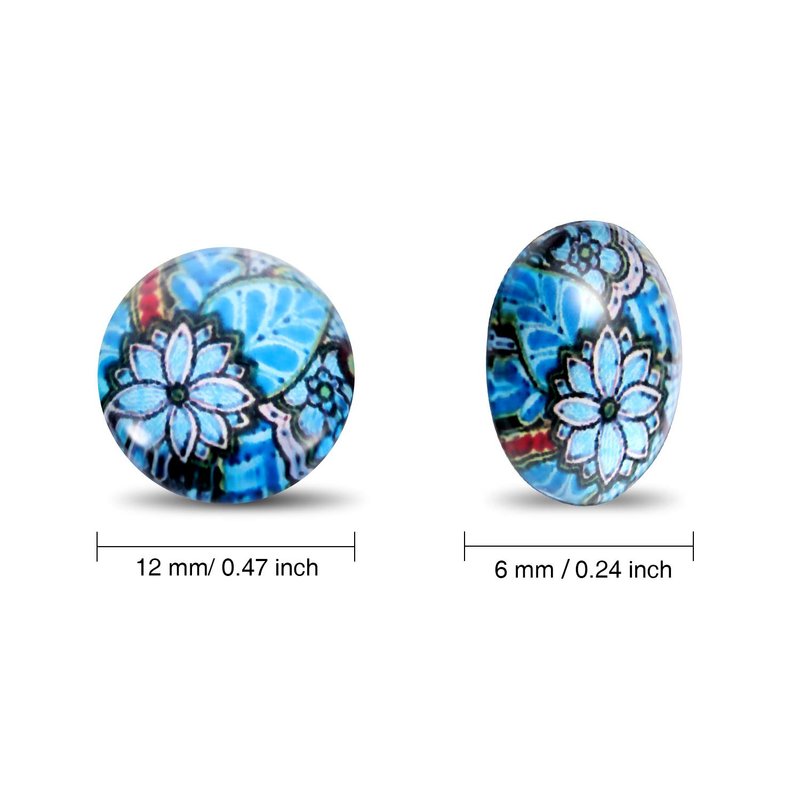JOVITEC 200 Pieces 12 mm Flower Pattern Glass Beads Mixed Color Flat Marbles Mosaic Printed Glass Half Round Crafts Glass Mosaic for Jewelry Making