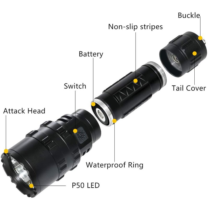 - The flashlight was build by high level aluminum alloy, it is very solid and high shock level. The flashlight is waterproof with the O rings .