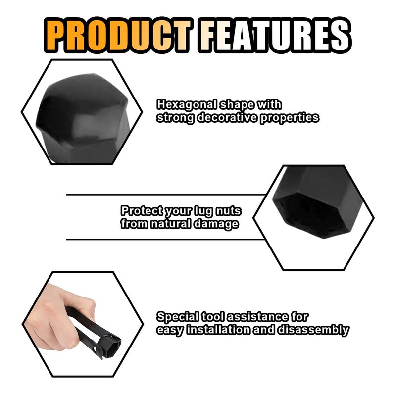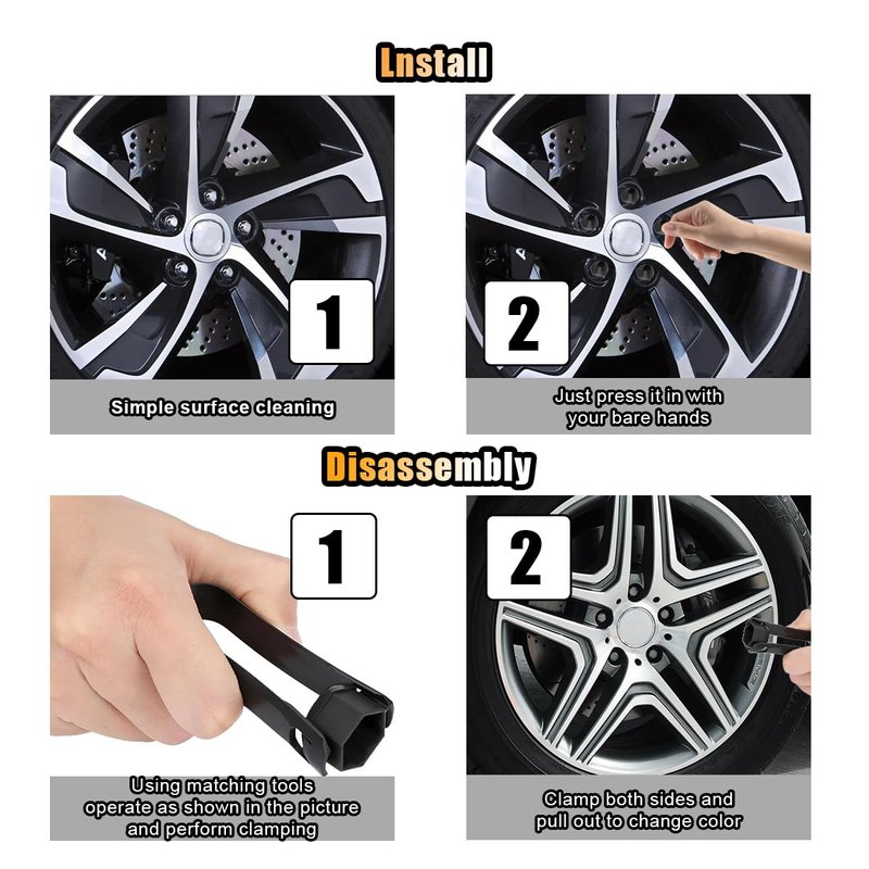 - 【Easy to Install】:It only takes a few seconds to press the car lug nuts onto the bolts, ensuring that the nuts fit snugly against the nuts and won't fall off or come loose. The removal tool included in the package allows you to replace the tire bolt covers easily. Note: You need to clean the wheel bolts before installation.
