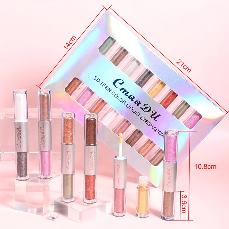 -->The shiny liquid eyeshadow set featuring a soft and small brush tip that easily allows you the rich colors and 3D on your eyes. If used for evening, it will make the eyes brighter in the dark and become the focus of glamorous.