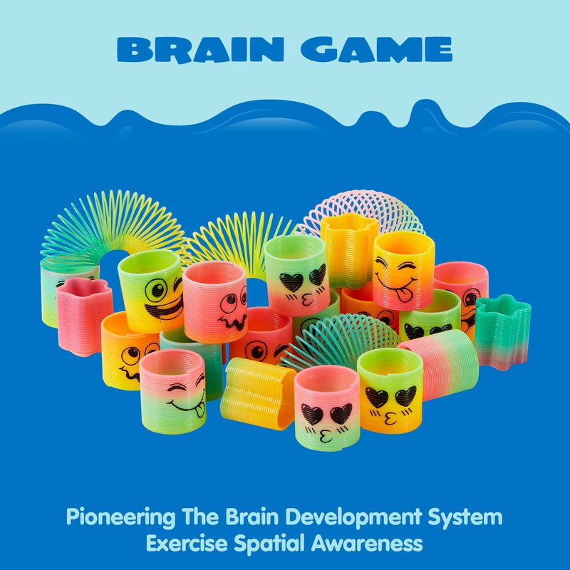 - COMPREHENSIVE SET. Our rainbow springs party favors includes 20 mini round face springs, 10 mini shaped springs . You will surely make a lasting impression with your guests and friends with these birthday goodie bag stuffers.