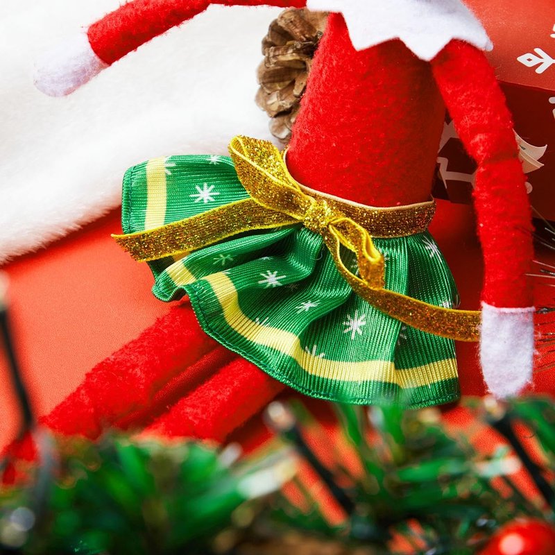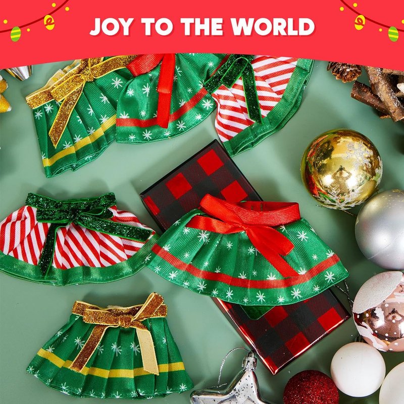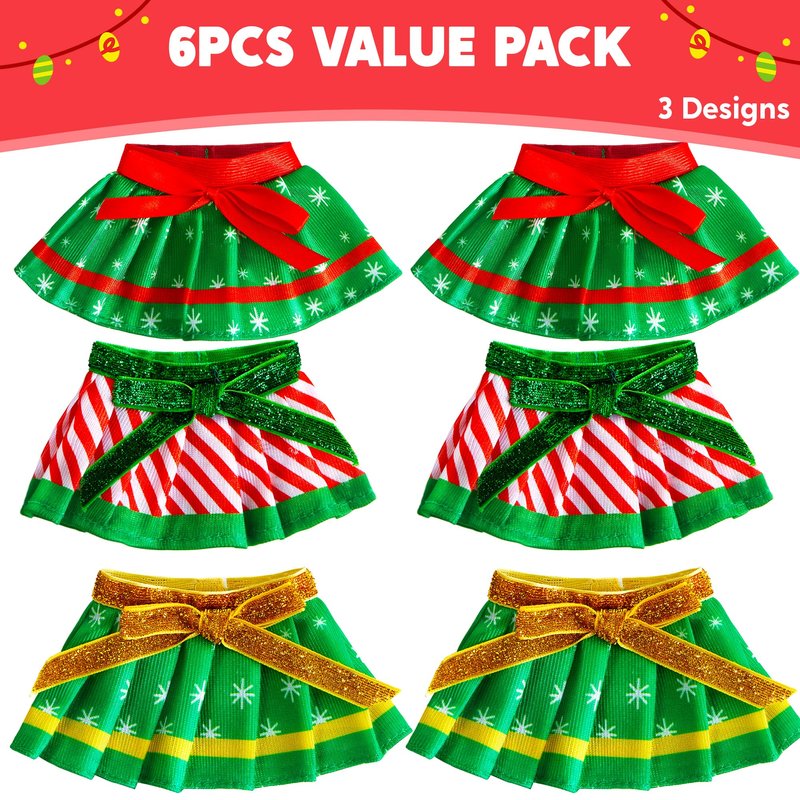 - Unique Design. Santa style Clothings for Doll Girl Set includes 3 festive looks, you will get 2pcs skirt with red and white stripes, 2pcs skirt with snowflake dots gold sash, 2pcs skirt with snowflake dots red sash. Adorned with charming Christmas designs and sweet bow details, these outfits add an extra dose of whimsy to your doll appearance. Watch as their adorable attire brings smiles to everyone during the holiday season.