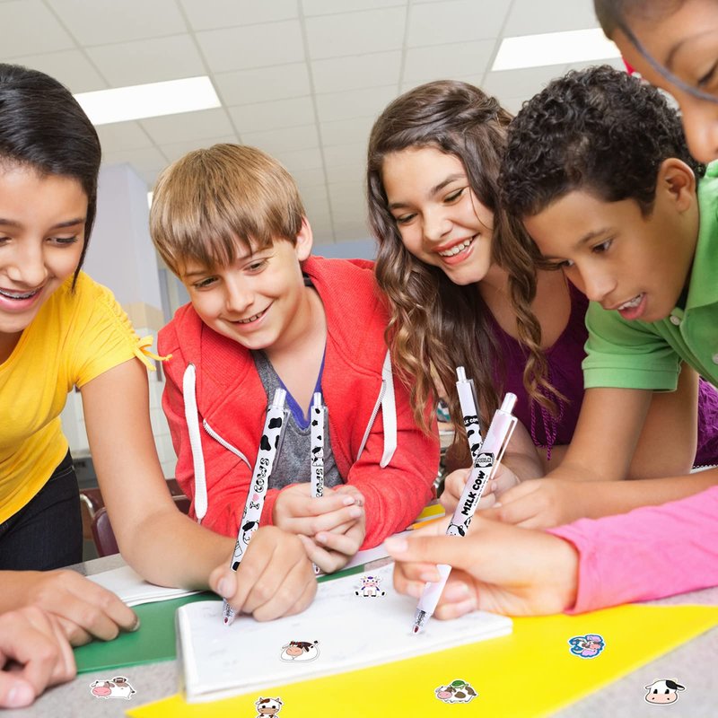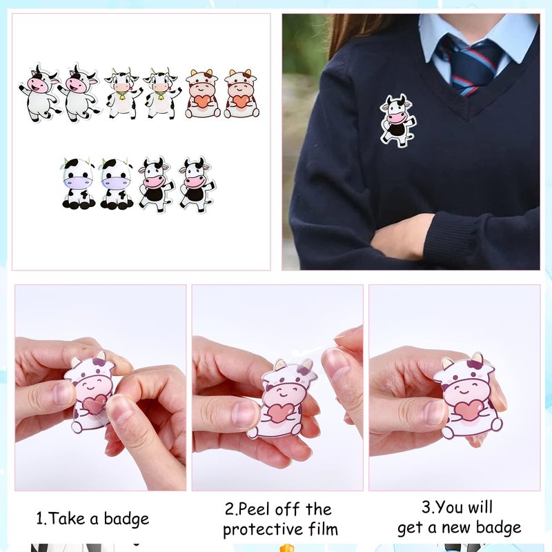 - Reliable and Reusable: The cow stickers are made of PVC material, waterproof and self adhesive, not easy to fade or tear. And the bags, black press pens, pull back cars are made of plastics. The cow badge are made of acrylic. You can use all of them for a long time.