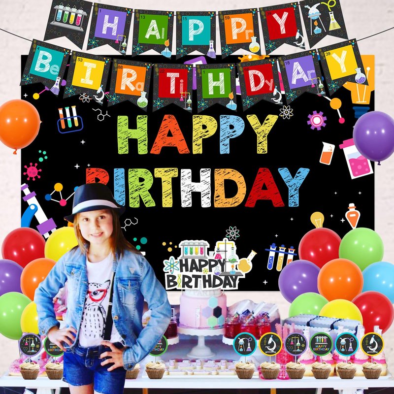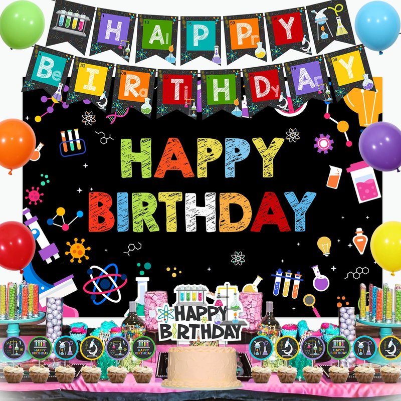 - Easy to Assemble: You just need to connect the happy birthday banners and balloons hang them on the backdrop wall, tree, fireplace, door and anywhere you want. The cute cupcake toppers are perfect for your cakes and desserts. Give you a special science birthday party!