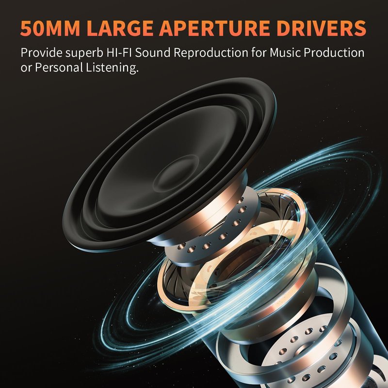 - HI-FI Sound: 50mm high-fidelity large driver unit ensures high sound reproduction and pure sound.