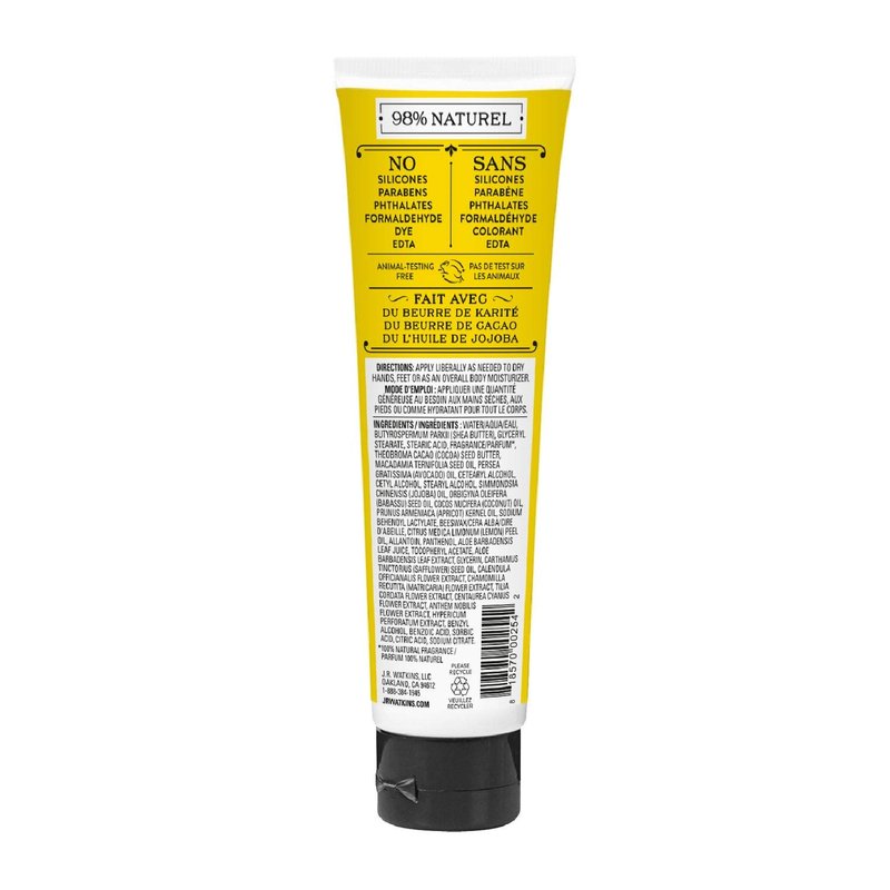 J.R. Watkins Natural Moisturizing Hand Cream, Hydrating Hand Moisturizer with Shea Butter, Cocoa Butter, and Avocado Oil, USA Made and Cruelty Free, 3.3oz, Lemon Cream, Single