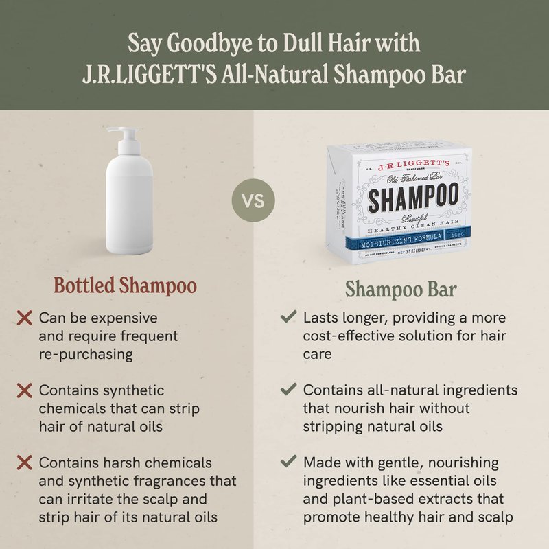 - Clean, Healthy, Beautiful Hair: J.R.LIGGETT’S Vegan shampoo bars remove the built-up sebum that can clog and damage hair follicles! Used regularly, it promotes a radiant, healthy shine that’s never greasy. You may find you no longer need conditioner.