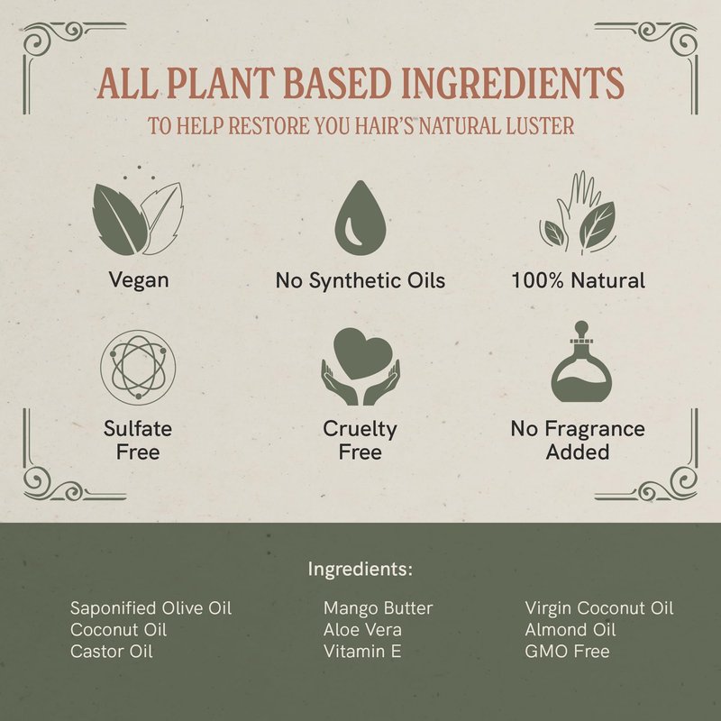 - All-Natural Formula: Made without synthetic oils, detergents or chemicals, it's a very mild sulfate-free shampoo. Perfect for permed, colored and naturally curly hair. It offers clean, healthy, beautiful hair without stripping all your natural oils.