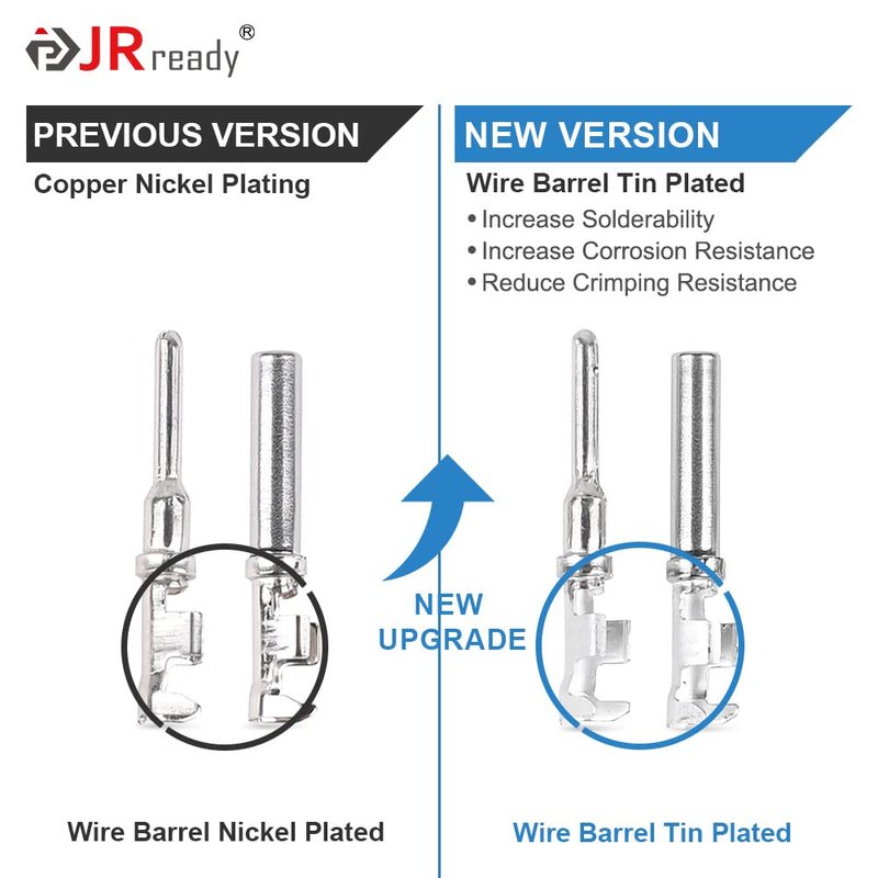 - 【Upgraded Deutsch pin size】: JRready Contact size 16 has a wider wire range for 14-18 AWG. We have extended the use of this product to the limit.Tinned Copper(Nickel plating and Tinned copper end). Can be connected by crimping and soldering, Increase solderability, corrosion resistance and reduce crimping resistance.