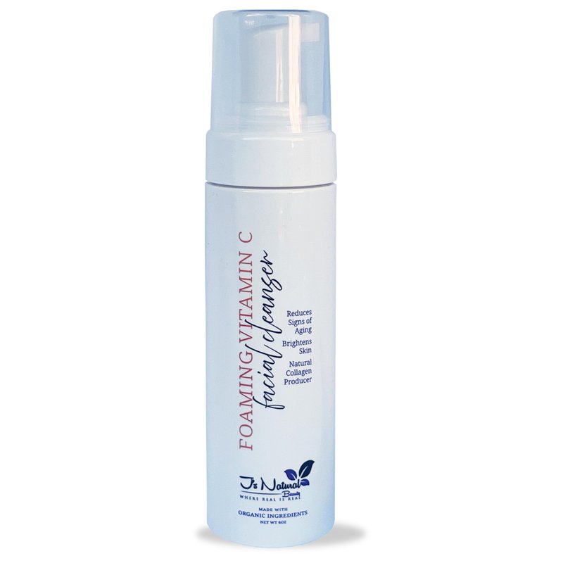 J's Natural Beauty Foaming Vitamin C Facial Cleanser with Organic Ingredients/Grapefruit, Orange and Lemon Scent and Essentials/Rosehip and Aloe Vera/
