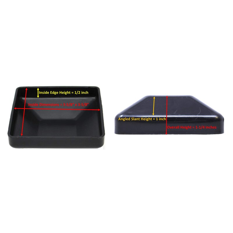 - Size: Inside Dimension 3-5/8" x 3-5/8" Square ~ 1/8-inch-thick to protect your treated posts from water and sun damage