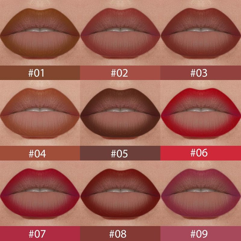 - 【Highly Pigmented Matte Lipstick】The new matte lipstick lip gloss It can also be used as a lip liner, has 9 vibrant and bright colors, Exquisite and elegant tubular appearance in auburn, It includes mysterious, elegant and noble tones such as wine red, auburn and brown, The rich colors, Flawless contour and gradual ombre effect, combined with a mature and steady makeup style, create sweet, sexy and full lips for you. Full coverage with one touch, kissproof, durable, easy to color, non-caking, quick to get out lip makeup, Intense bold Color lipstick is suitable for all skin colors