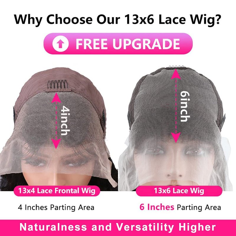 - 13x6 Lace Wig Advantages: More Popular Nowadays, The 13x6 Lace Frontal Allows For More Air Into the Scalp,Breathe More. Lager Lace Hairline, More Versatile Styling Option, Super Realistic and that 6" Deep Parting Space Allows for the Most Natural-looking Parting, Middle Part, Side Part or Other Shape. The Wigs Could Also Be Curls, Straighten, Colored, And Restyled As You Like, Factory Direct Price.