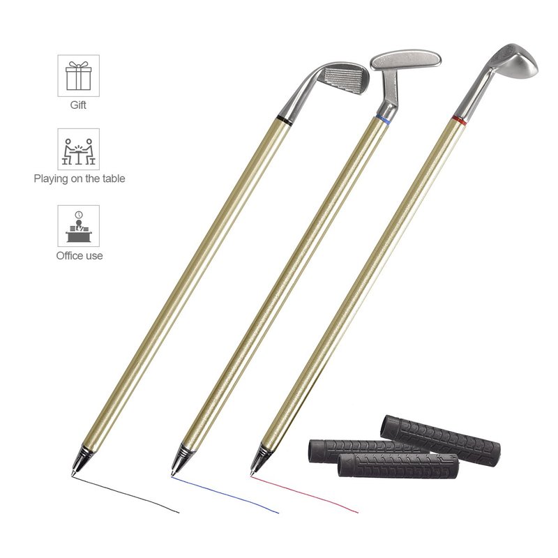 - A novelty golf club style ballpoint pens set. The 3 ballpoint pens with different refill ink colors(Driver: red Iron: black and Putter: blue).