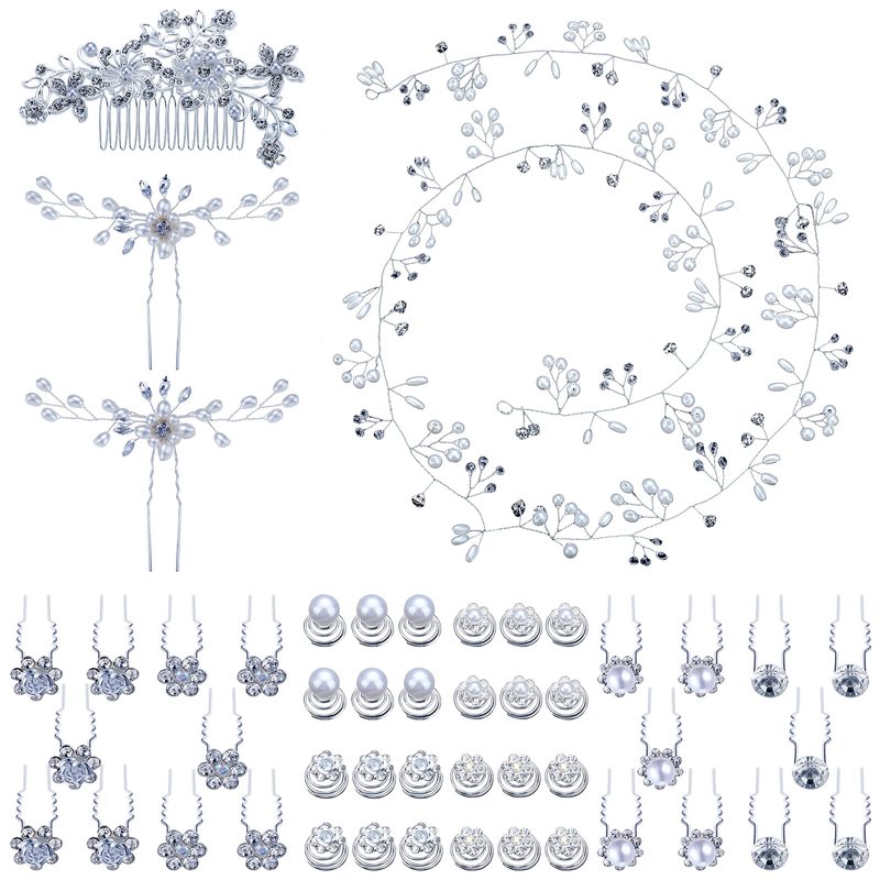 - Easy Matching: includes 1 piece crystal hair vine measuring about 1 m/ 39.4 inches long, 2 pieces U shape wedding hair pins, 24 pieces spiral hair pins in 4 styles, 1 piece bridal side comb and 20 pieces pearl flower updo forks in 4 styles, sufficient quantity and assorted styles, easy to match your different hairstyles by wearing the wedding hair accessories for brides