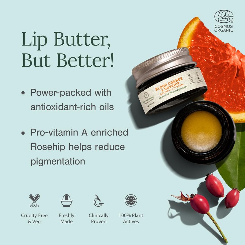 Juicy Chemistry Blood Orange & Rosehip Organic Lip Balm For PiGmented & Chapped Lips, 5 Gm