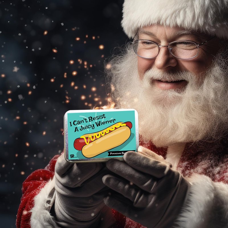 Looking for the perfect cheeky gift for a woman who loves a hearty laugh and a thick, sloppy sausage? Introducing Juicy Wiener Soap, the hilarious novelty gift that will make any wiener lover's day! This unique wienie lover's gift comes in a playful metal tin featuring a tasty steaming hot dog and the bold statement, "I Can't Resist a Juicy Wiener." Inside, the lucky recipient will find a bar of premium quality, hand-poured, charcoal-infused black soap that adds a touch of luxury to the wild fun. Perfect for bachelorette party favors, womens Christmas stocking stuffers, adult Easter basket filler, birthday gift bags, or care packages for any occasion that calls for a giggle, Juicy Wiener Soap is the ultimate in funny bath gifts for women and strange adults gag gifts. Give her a deliciously tacky gift she'll never forget with Juicy Wiener Soap!