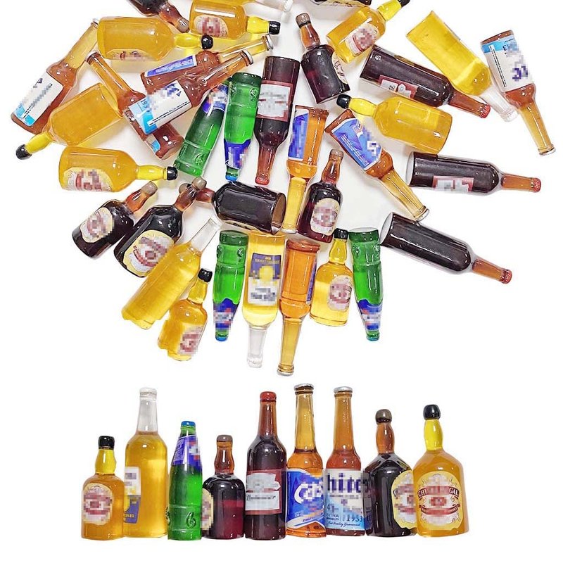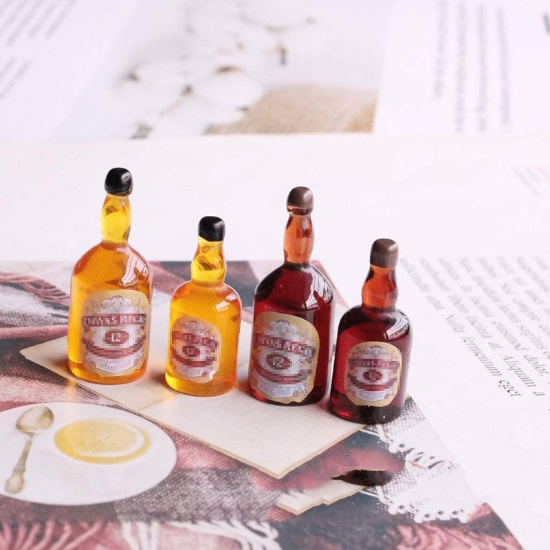 - Real-like design with excellent workmanship-quality resin wine beer cocktail champagne juice soda drink bottles model toy. Perfect for your dollhouse birthday, wedding and bakery scenery.