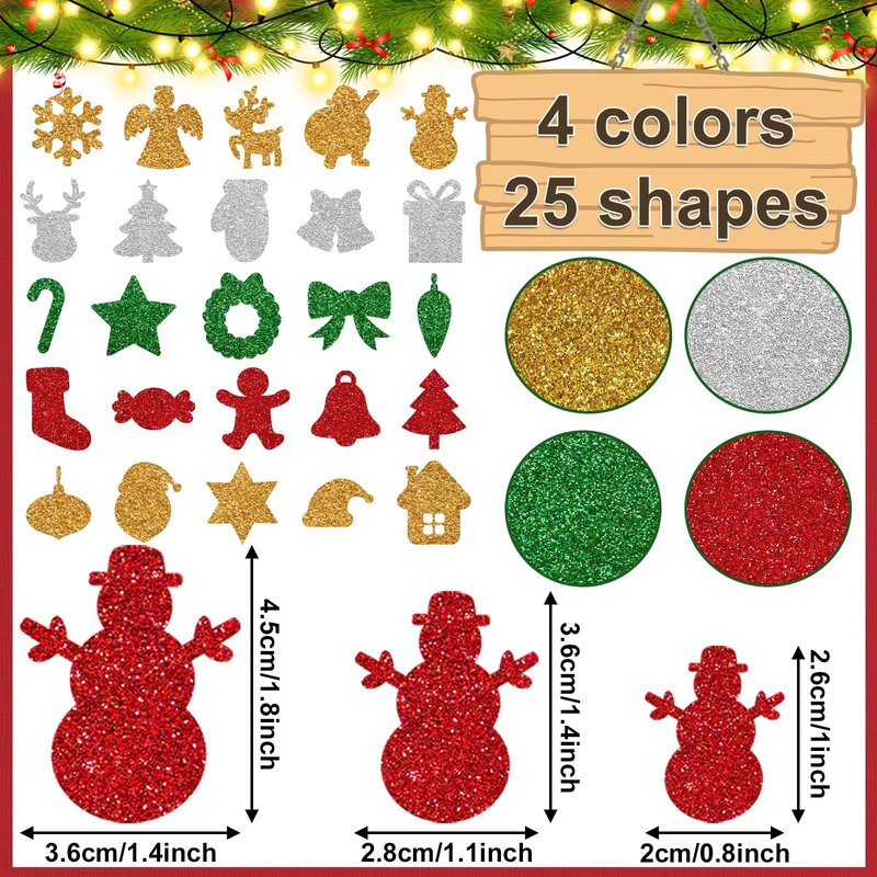 - Christmas Theme Design: The Christmas crafts adopt 4 classic Christmas colors of red, green, gold and silver, and is composed of different Christmas elements, such as gifts, Christmas stockings, snowman, Santa Claus, gingerbread man, Christmas tree, elk, snowflake, Christmas ball, Christmas hat, Christmas bell and other shapes, which easily creates a strong festival atmosphere