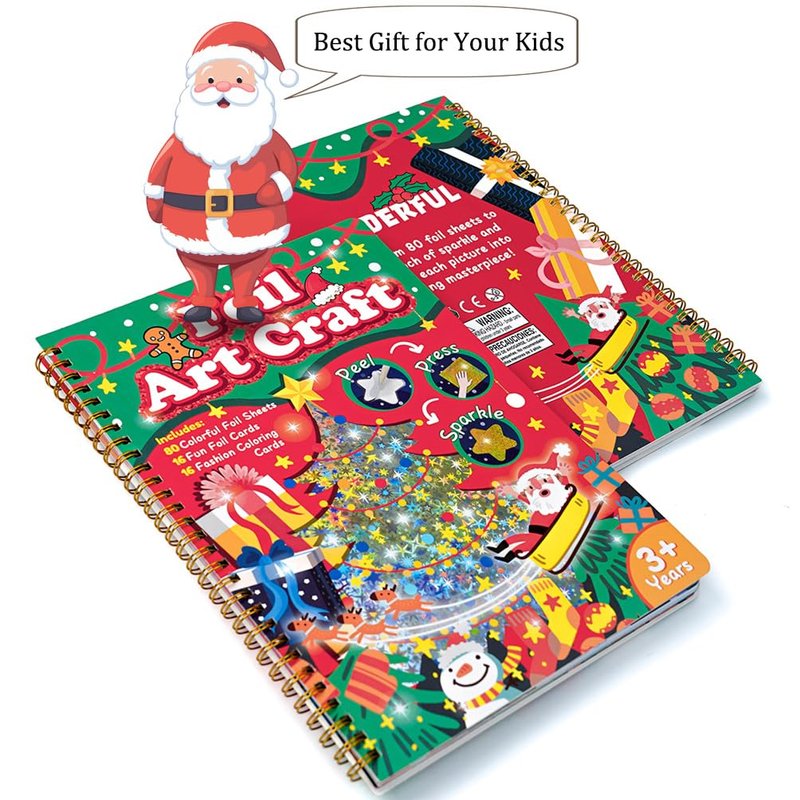 - Complete Crafting Set for Hours of Xmas Fun - Our value-packed kit includes everything your child needs to create stunning Christmas foil paper art: 16 foil paper art cards, 16 coloring cards, 80 vibrant foil sheets, and a wooden stick. The included instruction in the notebook makes it easy for kids to dive right into the fun, ensuring endless crafting adventures.
