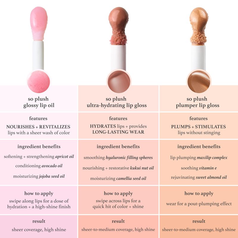 Julep So Plush Glossy Lip Oil, Hot Pink what it is: Glossy Lip Oil what it does: nourishes lips with a sheer wash of color why you need it: Use this sheer, nourishing formula to help revitalize dry lips while moisturizing with skin-friendly botanical oils. how to use it: Swipe along lips for a high-shine finish.