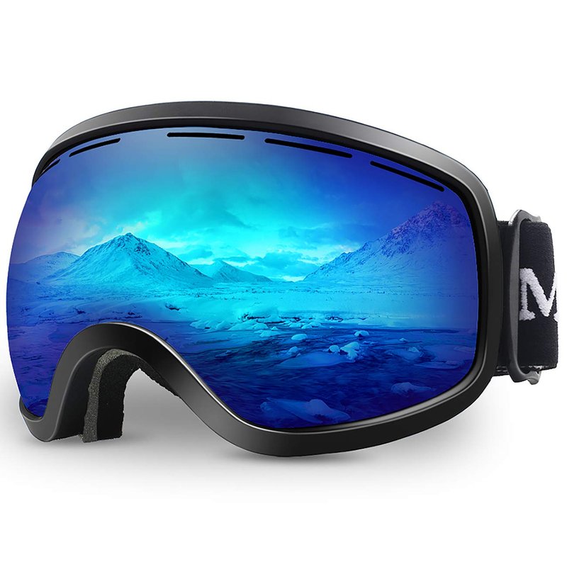Juli Ski Goggles, Skiing Skating Snowboarding Goggles with Anti-Fog UV Protection M3(Black Frame/7.9% VLT Blue Len)