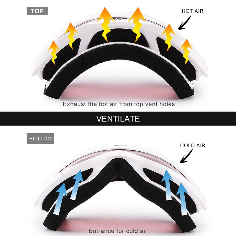 - PROFESSIONAL VENTILATION- Designed to reduce fogging and optimizes the flowing air over the inside of the lens. ski goggles provide smooth air-flow system which brings fresh air and exhaust moisture quickly and effectively.