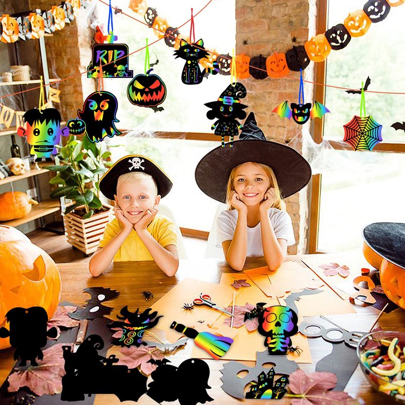 - 🎃Halloween Party Favors: The magic rainbow scratch paper art is suitable for Halloween treats bags, party favor bag of tricks, Halloween party favor, Halloween party games, Halloween gifts, Halloween party supply, haunted Halloween parties, trick-or-treating, Halloween arts and crafts, Halloween party favors, Halloween event party supplies, classroom prizes, and all other uses.