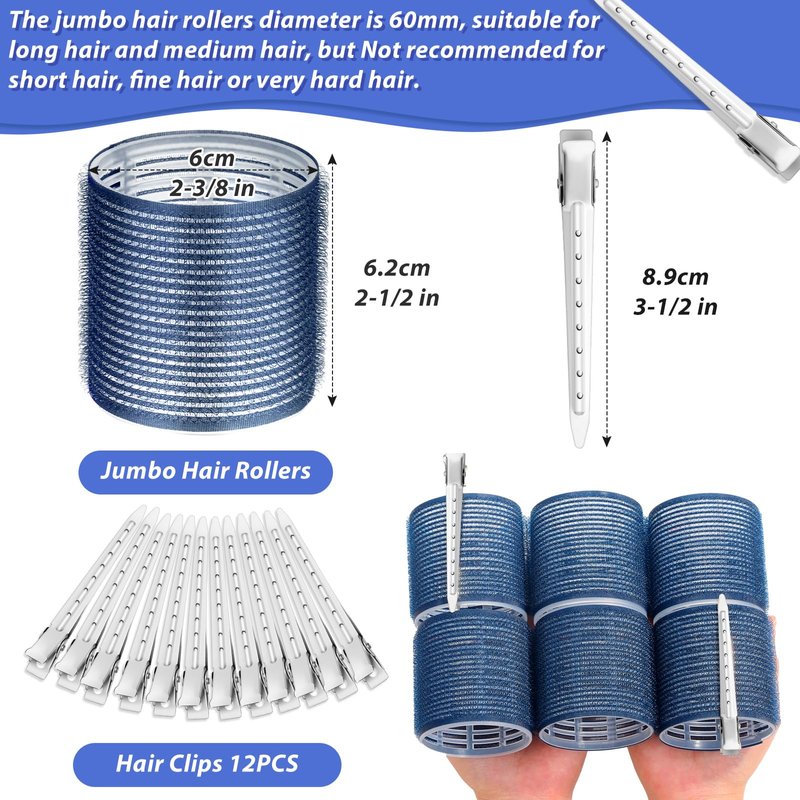 - WHAT YOU WILL GET - This hair curlers set comes with 12pcs jumbo hair rollers and 12pcs stainless steel duck teeth bows hair clips. Great hair roller set for long hair. NOT suitable for short hair, fine hair, or very hard hair conditions. Attention Please: The hair clips are well packed inside the hair rollers (Needs to be unpacked to see the clips inside). If you do not find it please feel free to contact us