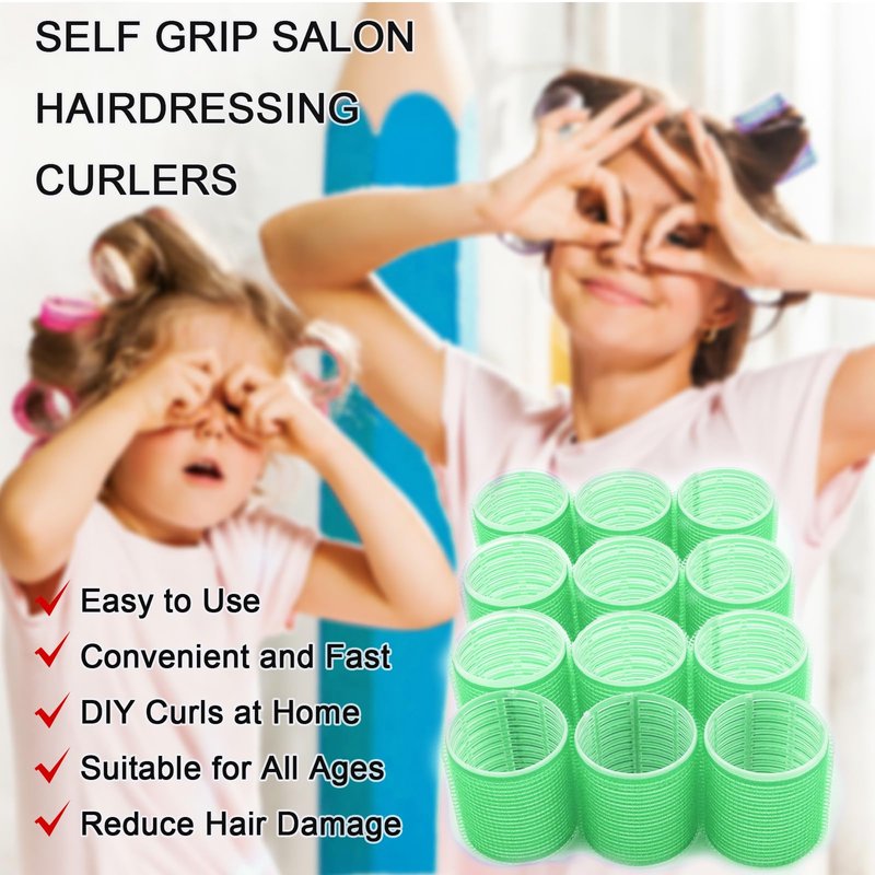 Hair Rollers, 12 Pack Salon Hair Dressing Curlers Self Grip, Hair Curlers for Long Hair with Clips, DIY Curly Hairstyle, Colors May Vary, Large