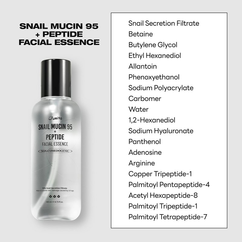 - SUPERCOMBO OF TWO POWERHOUSE INGREDIENTS - 95% Snail Mucin moisturizes refreshingly. 5-Peptides boost anti-aging for firmer skin.
