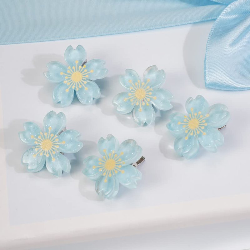 Jumwrit Flower Hair Clips Cute Snap Hair Clips Hawaii Flower Hair Clip 5PCS Hair Barrettes for Women Girls Flower Hair Accessories Clips(Blue)