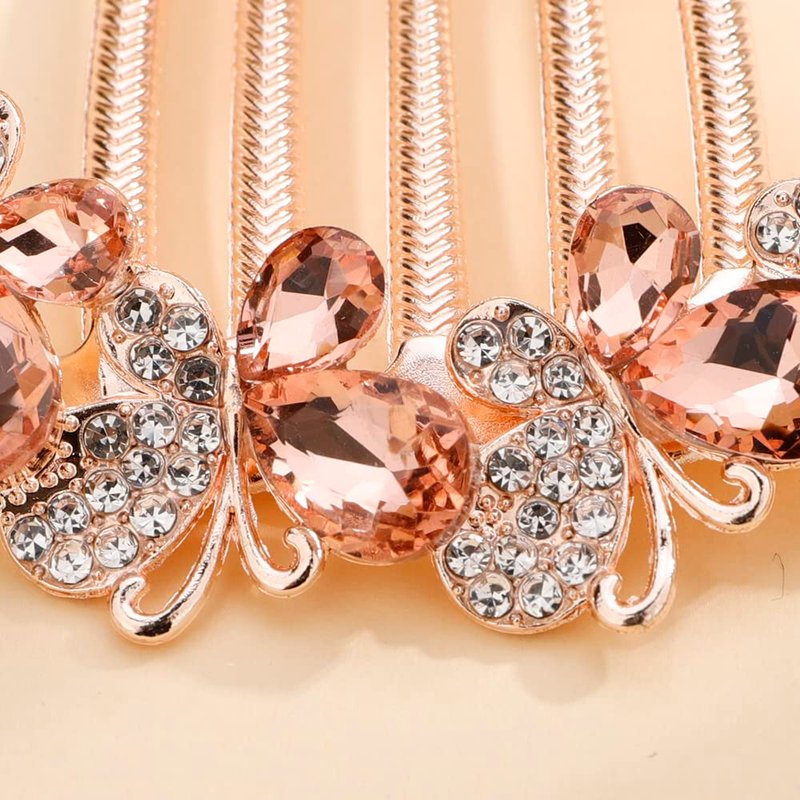 Jumwrit Wedding Crystal Hair Comb Long Rhinestone Butterfly Hair Side Comb Vintage Bride Bridesmaid Headpiece Bridal Hair Clip Comb Jewelry for Women Girls(Rose Gold)