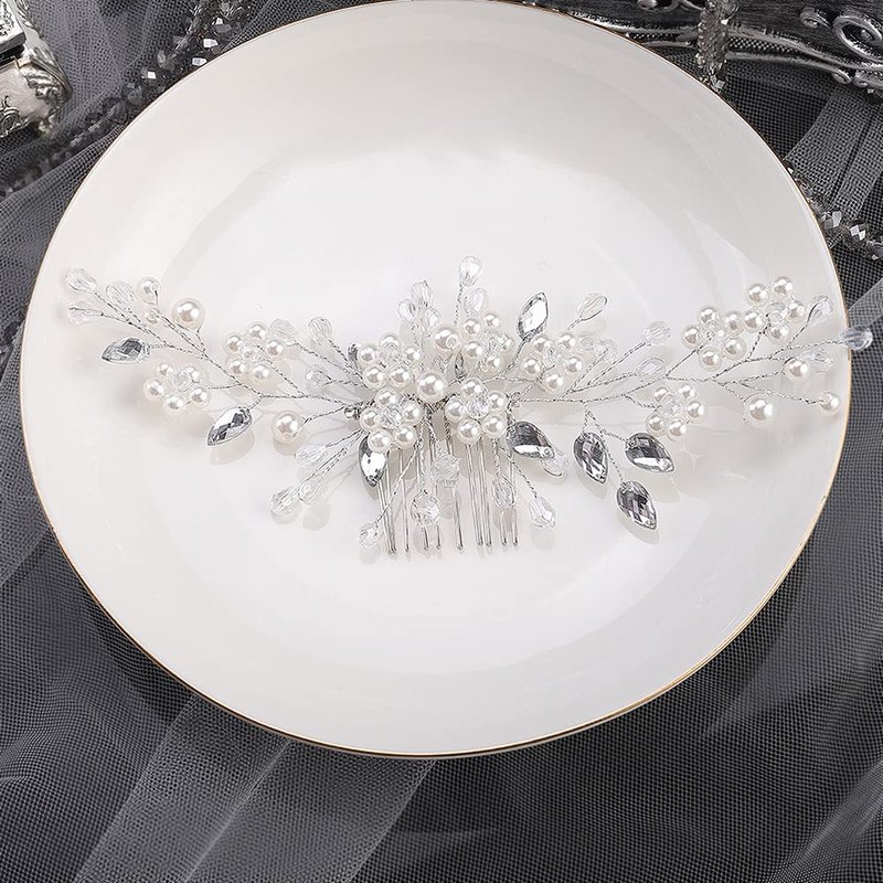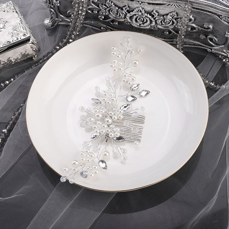 Jumwrit Wedding Hair Comb Rhinestone Teardrop Hair Comb Pearl Flower Hair Comb Bridal Headpiece for Wedding Brides Bridesmaids Hair Accessories(Silver)