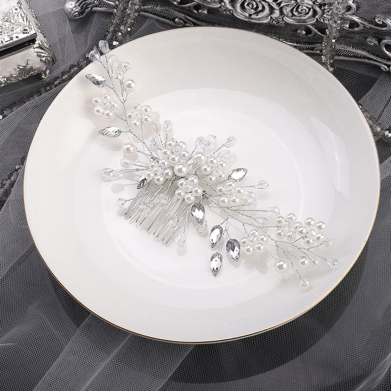 - Delicate bridal hair comb is made of rhinestone, pearl, and alloy, handmade, exquisite, durable and pretty.