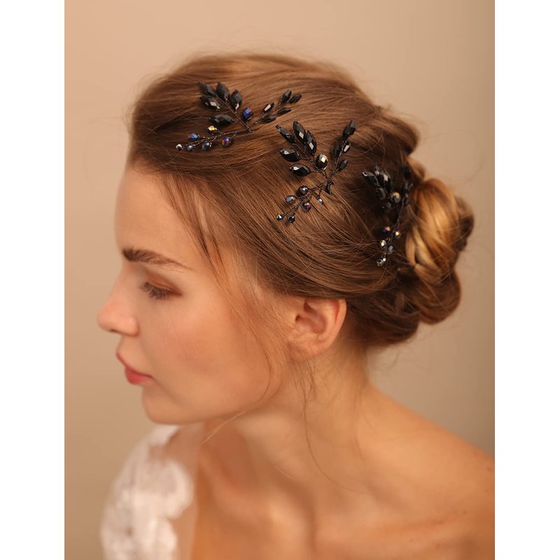 - Unique design black rhinestone hair pieces for brides and bridesmaids will make you more charming and elegant.