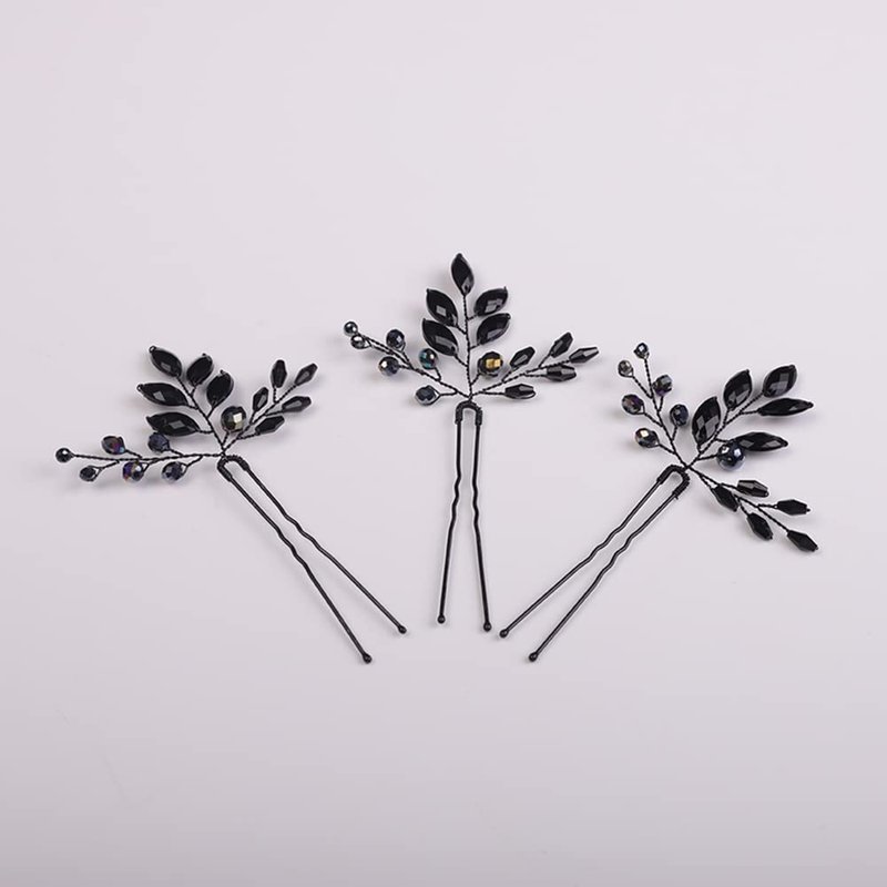 Jumwrit Wedding Hair Pins Black Rhinestone Hair Pins for Wedding Handmade Beaded Hair Pieces Bridal Hair Accessories for Brides and Bridesmaid(3pcs)