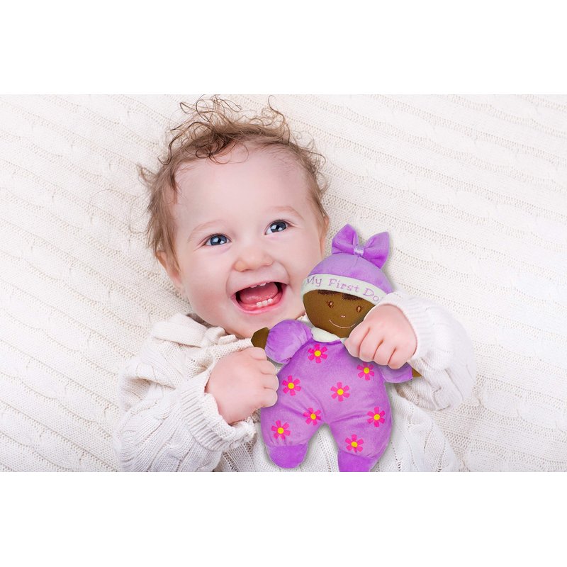 - ADORABLE FIRST DOLL: Every baby needs a constant companion throughout early childhood. My First Doll Hazel is soft and snuggly, destined to be the go-to choice for your little ones. Featuring embroidered adorable facial details and printed cute floral patterns on her purple pajama, Hazel makes a perfect baby shower gift for newborns, toddlers and preschoolers.