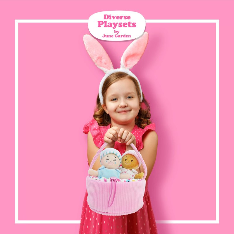 June Garden My First Basket Plush Baby Doll Set - Includes 1 Basket and 4 Multicultural Soft Plush Babies with Emotional Expressions for Infants and Toddlers Birth and Up