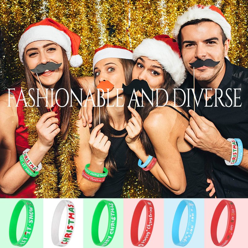 - Quality Material: JUNEBRUSHS Christmas band bracelets are made of quality rubber, which is soft and durable, stretchy, not easy to fade or wear. Wristbands are suitable for most people's wrists and comfortable to wear