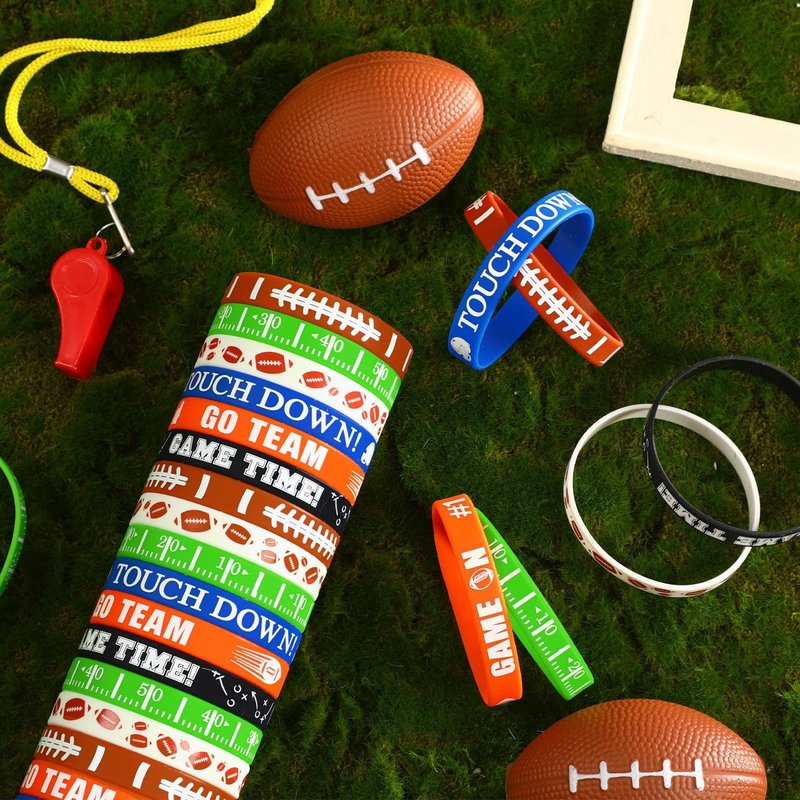 - Suitable Size: Our football party favors have a circumference of 8 inch/20.2 cm and a width of about 0.47 inch/1.2 cm, which is suitable for most teenagers and adults, and has good elasticity and can be stretched to adapt to people with different wrist size