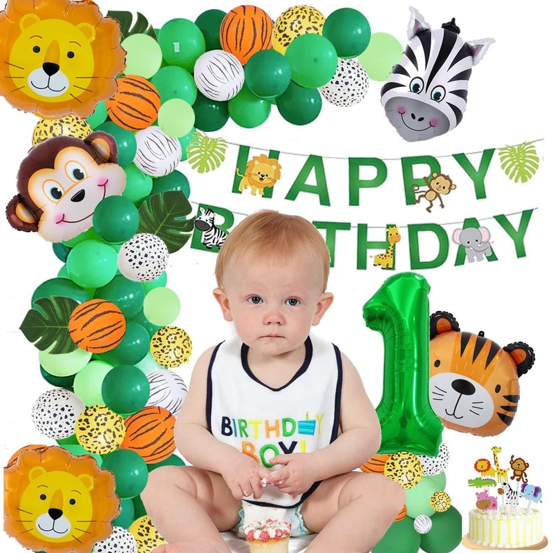 Jungle Theme Balloon Arch Kit for 1 Year Old Baby Boy Girl, Green Happy Birthday Banner Balloons Garland, Safari Shower Party Supplies Decorations 105pcs Wild Jungle Theme Party Supply Animal Balloon