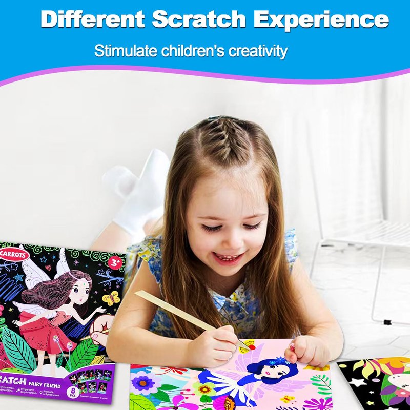 - ✍【Magic Scratch Art 】Scratch the surface of the black scratch paper with a wood stylus tools to reveal a hidden world of vibrant and magical colors. The magic scratch paper is a princesses design that girls love so much, scratch the surface to get an scratch paper art set. Even the same scratch pattern can create different effects! Everyone can take the time to play, think, test and prepare for their masterpieces.
