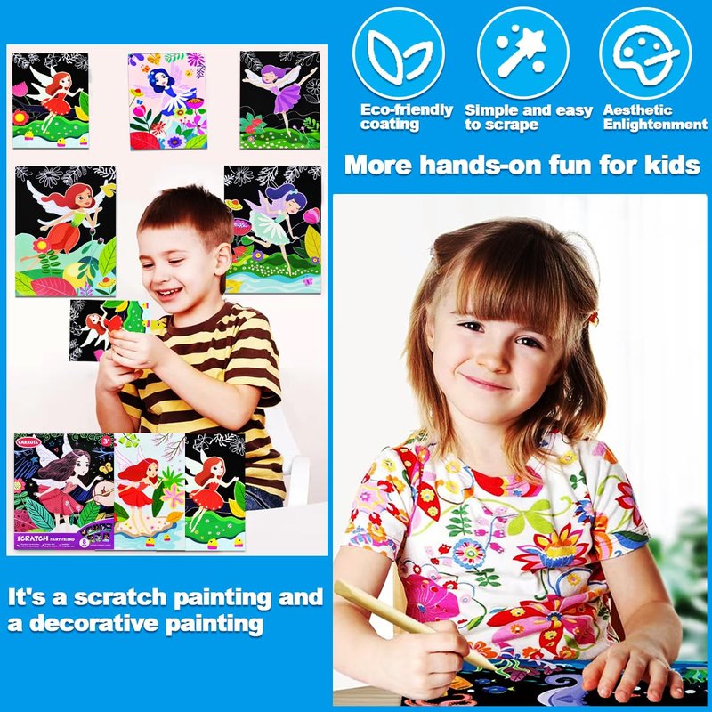 - 🤞💕【Safety & Less Mess Art Craft Projects】All rainbow scratch paper are made of premium paper making it extremely thick and hard to damage or torn. Our scratch art paper is made of water-based odorless coating, no paint, non-toxic, non-polluting, and won't harmful for kids; An arts and crafts for girls.