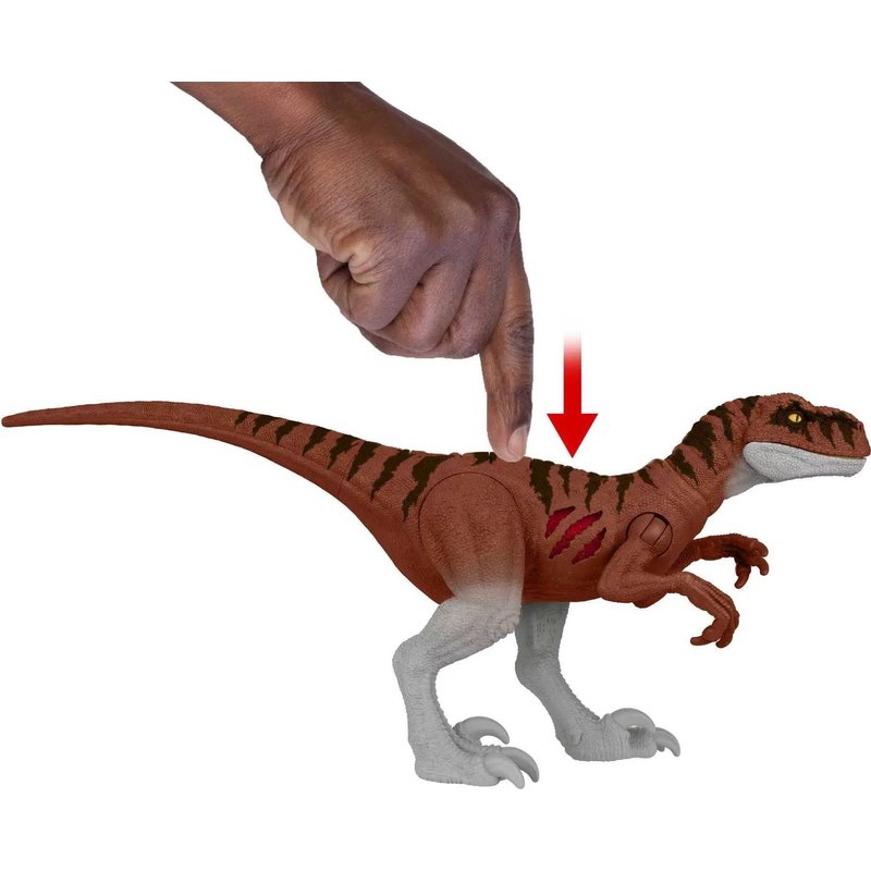 - Each figure of a carnivore species has 2-sided Extreme Damage you can reveal by pushing the button on top. Some exclusive dinosaurs are included