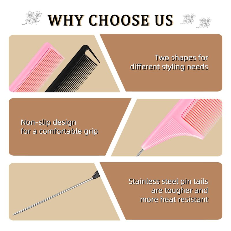 - 【Durable and Stable】Jurrissa Rat Tail Comb is made of ABS,which is not easily deformed or damaged and is more durable than ordinary combs.The pin tail is made of stainless steel,which is not only heat-resistant but also anti-static