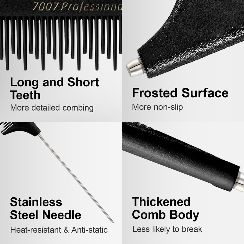 - 【Multi-Purpose】The fine tooth teasing comb have wide applications.Such as braided hairstyles,hair cutting,sectioning,back combing,weaving,hair coloring.Suitable for Salon and Home.Easily create the hairstyle you want