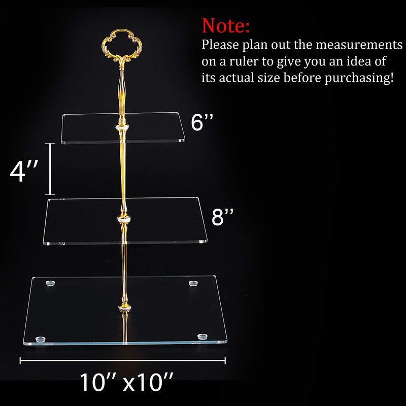 Jusalpha 3 Tier Acrylic Square Cupcake Stand, Dessert Display Tower (Gold Version 2, 1) 3SG-V2